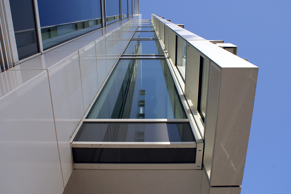Construction: Mullion/transom façades (aluminium) on the penthouse floor, incl. inset window and door elements (aluminium), sun-protection features, metal cassette cladding (aluminium)