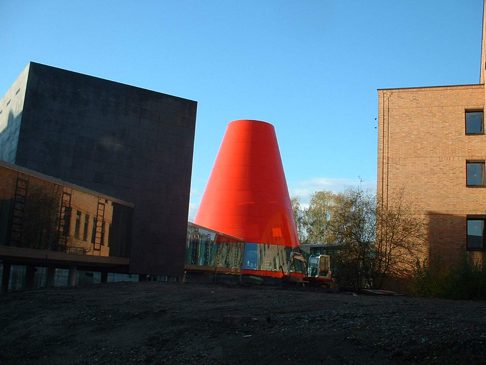 Structural glazing façades, inset louvre windows, conically curved glass, transom profiles, sheet metal