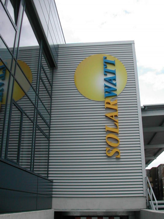 Besonderheiten: Verglasung der Lichtdachkonstruktion tlw. mit Solarmodulen, durch sehr große Riegelstützweiten ergaben sich hohe Glaslasten, Vertikalfassaden tlw. mit Sonnenschutzlamellen als Solarmodule
