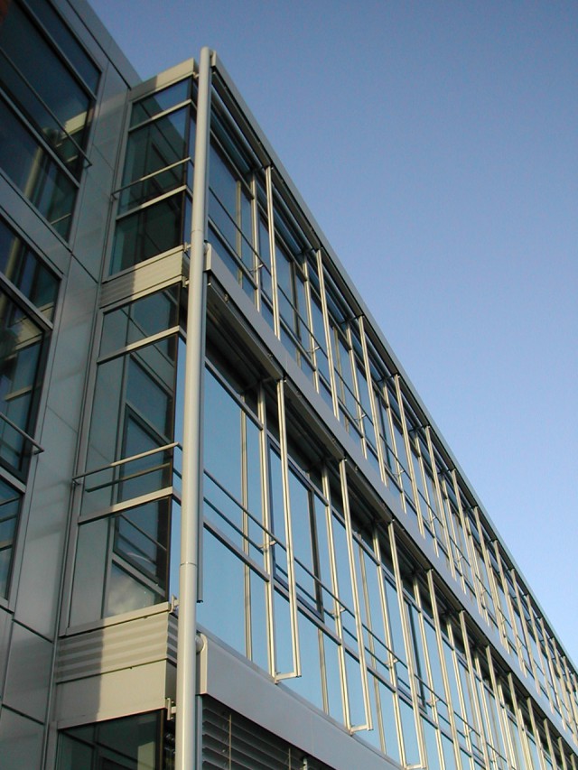 Mullion/transom façades (aluminium), incl. block windows (aluminium) comprising inset window elements, sheet façades (aluminium)