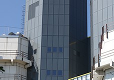 Special features: 6m wide supports for the stairwell façades, steel box girders (accessible) forming the upper connection for the soundproof wall